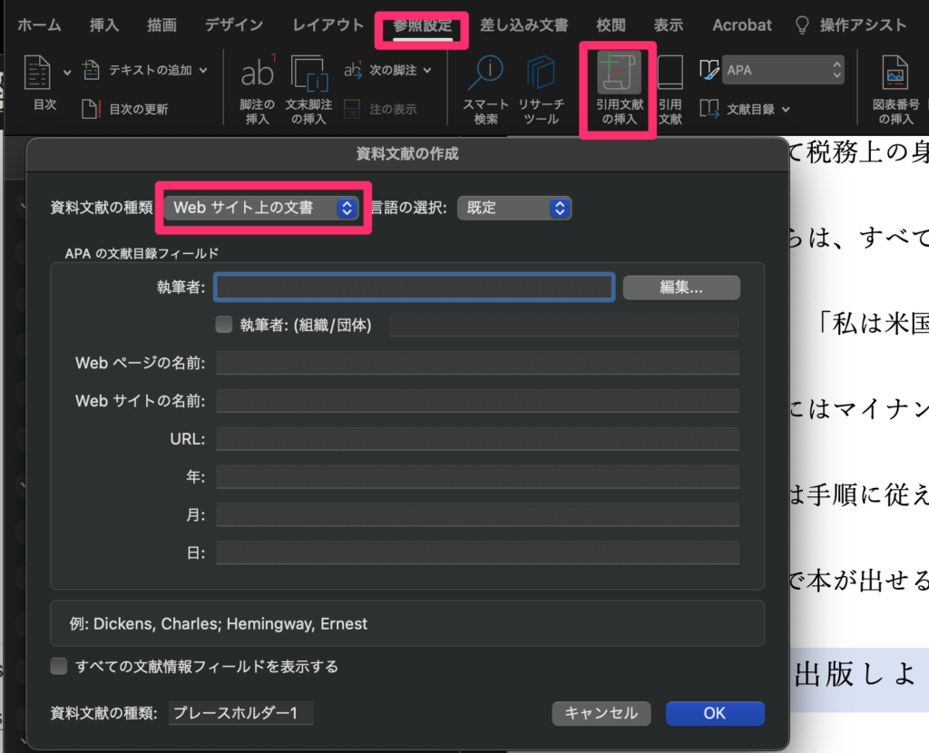 そのため、Wordの[引用文献の挿入]機能を使って参考文献を追加します。