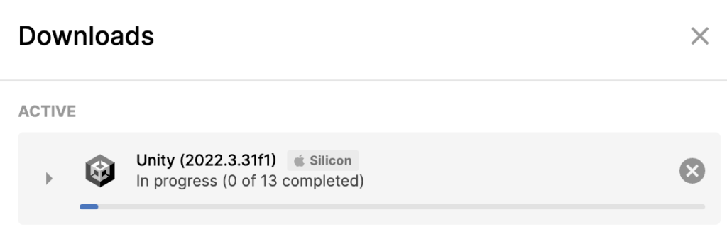 Unityのインストールが完了するまで待ちます。インストールが完了したら、Unity Hubから新しいプロジェクトを作成し、開発を開始できます。