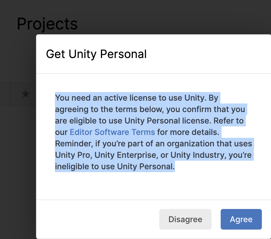 以下のPersonalライセンスの条件を満たしていることを確認し[Agree]をクリックします。