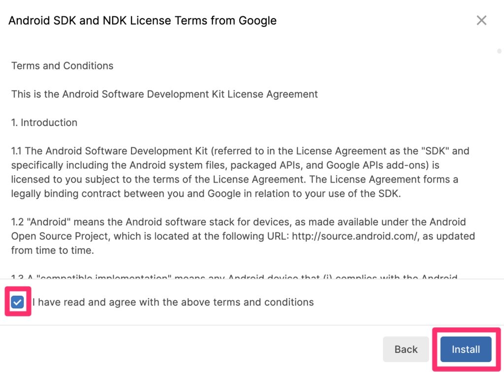ライセンスのチェックを入れて、[Install]をクリックします。