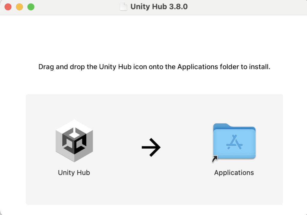 [Unity Hub]を[Applications]フォルダにドラック&ドロップします。