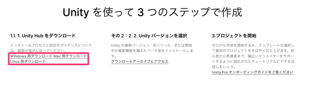 1. Unity公式サイトにアクセス