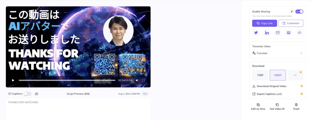 しばらく処理を待つとAiアバターが生成され、使用できるようになります。