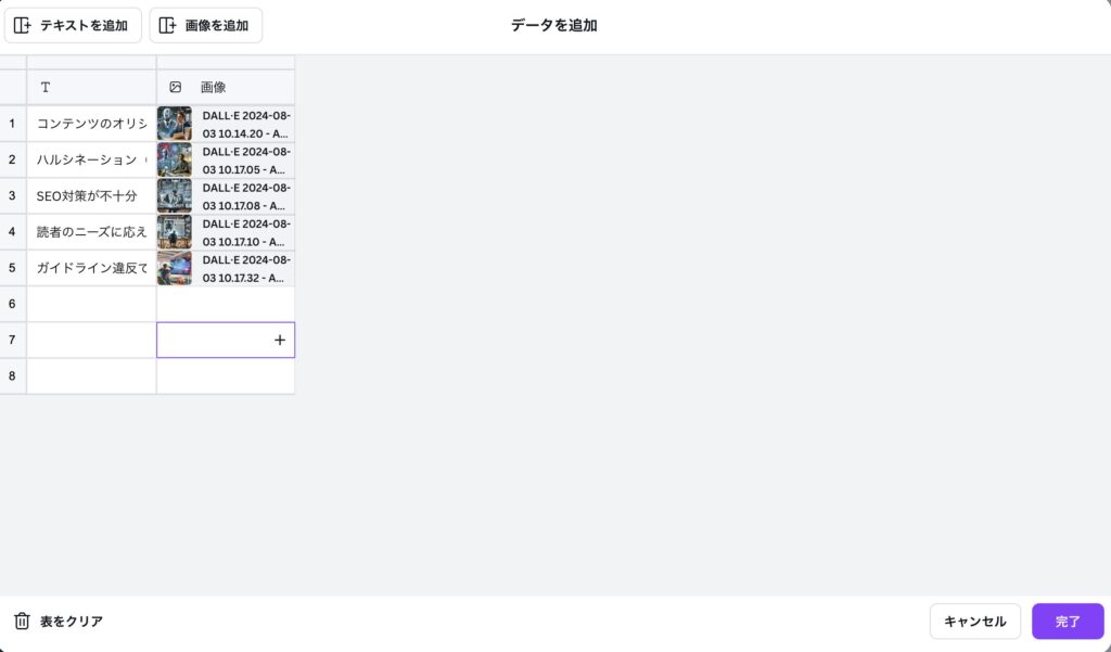 この機能を使うことで、用意したテンプレートに対して、複数のデータを組み合わせ、コンテンツを一括生成できます。