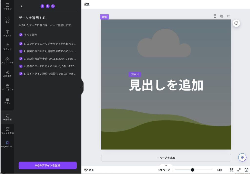 Canvaの一括作成機能を活用することで、効率的にコンテンツ作成が行えます。