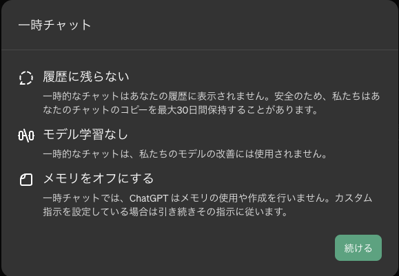 ChatGPTを安全に利用する方法の1つは、一時的なチャットセッションを利用することです。