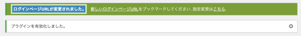 SiteGuard WP Pluginを有効化すると、即座にログインページのURLが変更されるため、ブックマークを忘れないように注意してください。