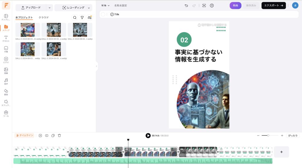 テキスト読み上げなどを行う際は、画面左下のツールから[AIテキスト読み上げ]を選びます。