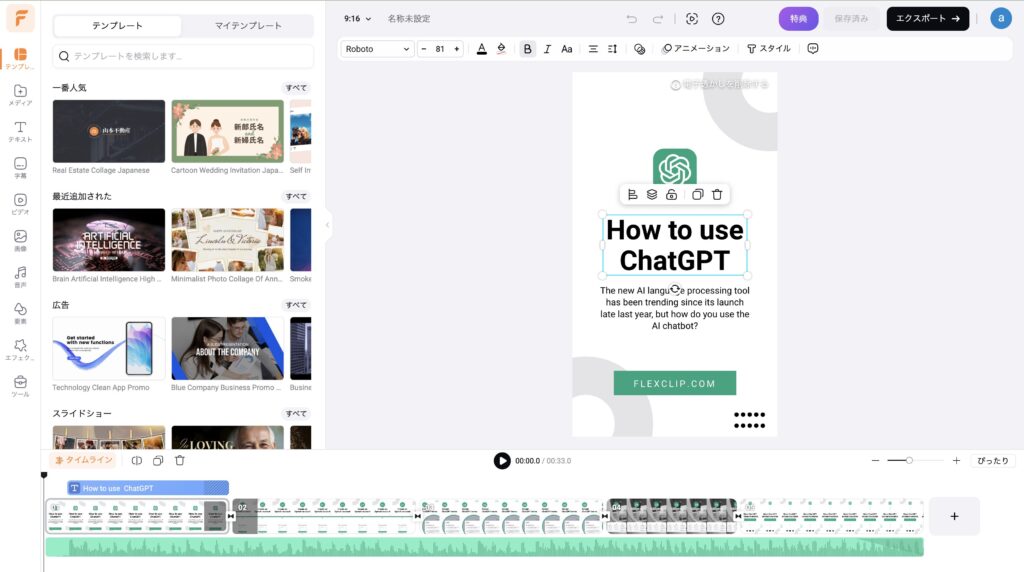 以下の動画のように、Flexclipを使って素早くTikTok用の動画を作成できます。