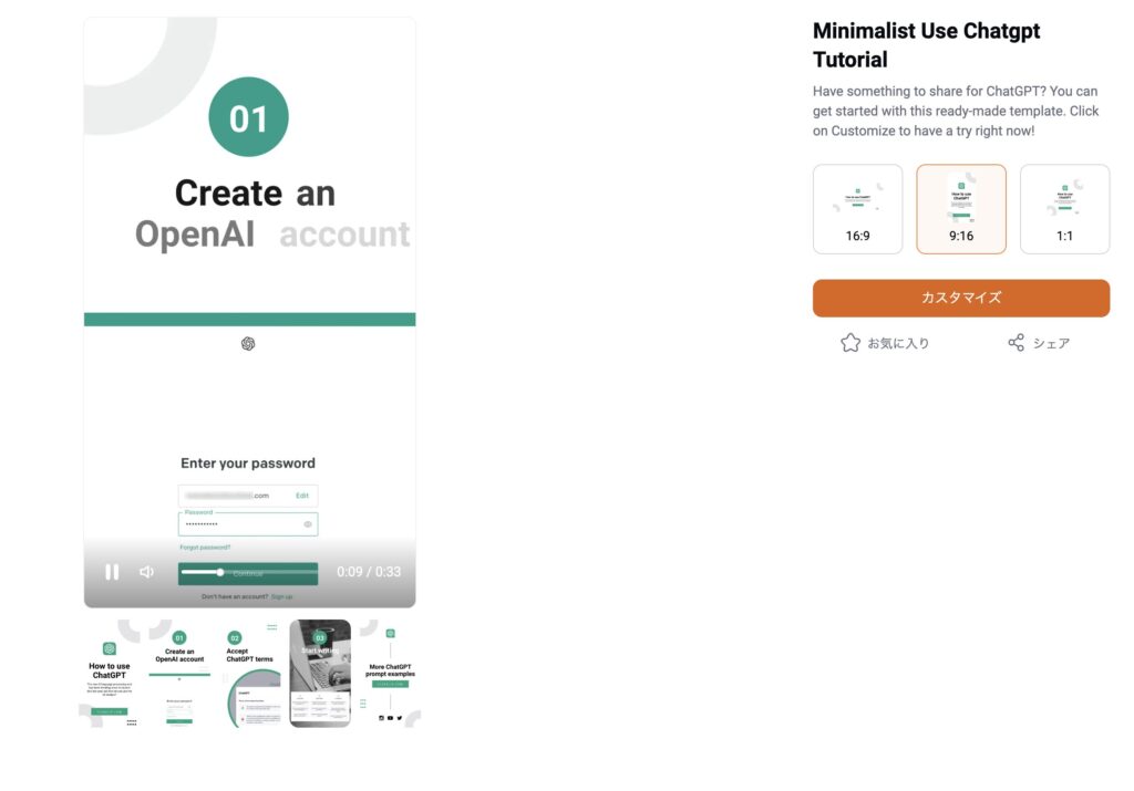 TikTokやYouTubeショート向けには9:16のサイズを選び、[カスタマイズ]をクリックします。