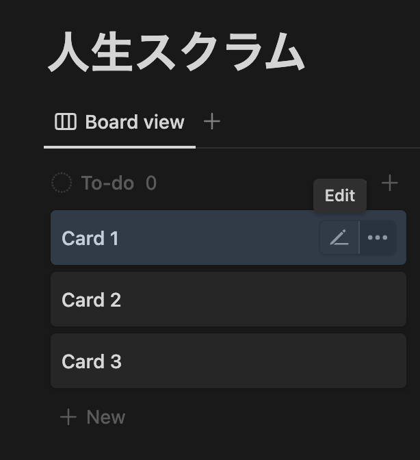 列のタイトル下の[+New]をクリックするとタスクを増やすことができます。