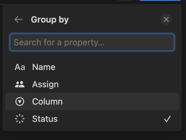現在は[Status]が選択されているため、こちらを[Column]に変更します。