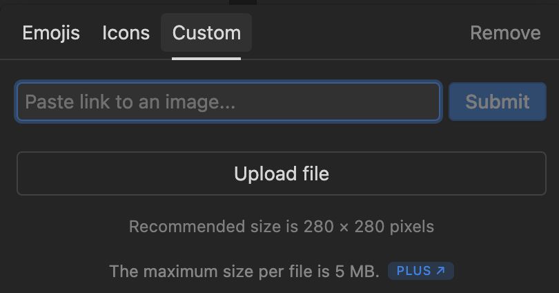 [Custom]をクリックし、[Upload file]で曜日アイコンをアップロードし、選択します。