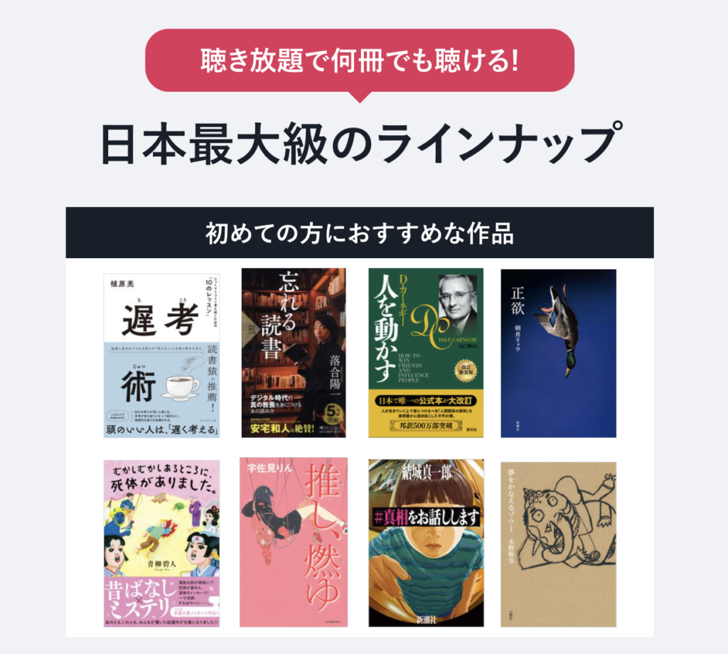 わたしはaudiobook.jpの聴き放題サービスを2倍速で利用しています。