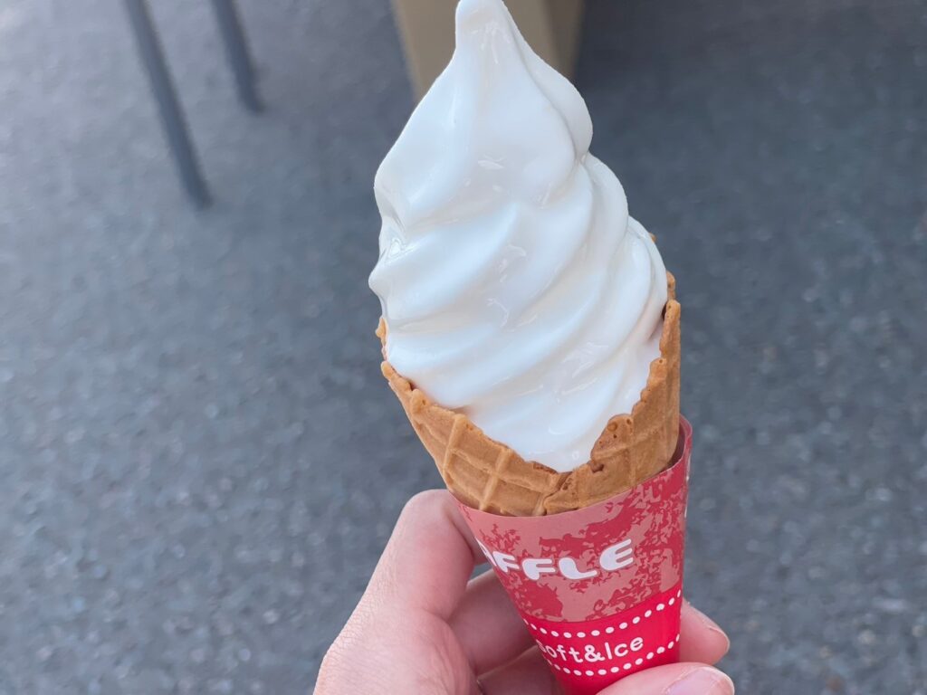 おいしい。すぐ溶けるため、車ではなくその場で食べるのをお勧め!