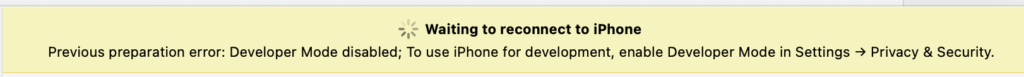 • 以下の画像のエラーが出ていれば、iPhoneの開発者モードがONになっていません。